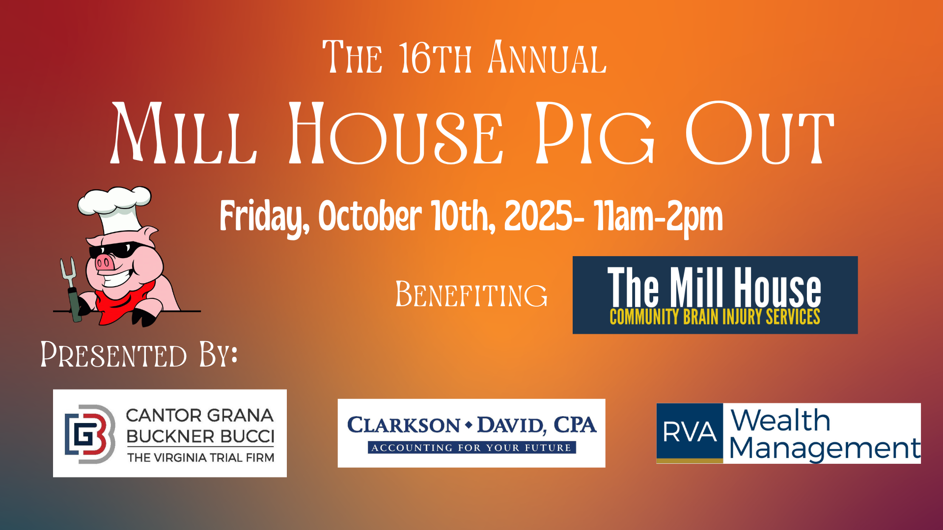 Please make plans to join us on 10/10/25 for the 16th Annual Mill House Pig Out!